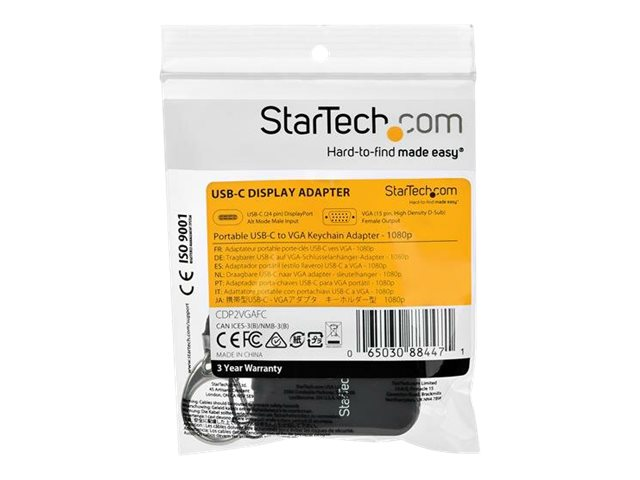 StarTech.com Compact USB C to VGA Adapter, 1080p 60Hz USB Type-C to VGA Video Display Converter with Keychain Ring, Active USB-C DP Alt Mode to VGA Monitor Dongle, Thunderbolt 3 Compatible