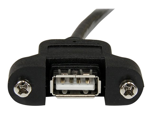 - Information Add an external panel mount USB connection to a PC or faceplate. The USBPNLAFAM3 3ft Panel Mount USB Cable provides a well-secured, easy to access USB-A port on your PC or on a faceplate, allowing you to customize your systems to suit your needs. Perfect for podiums, kiosks and other solutions where added access to USB devices is required. The adapter features one male USB-A connector and one female panel mount USB-A port and gives you an extension of 3ft, enabling you to place the cable as needed within the system case.