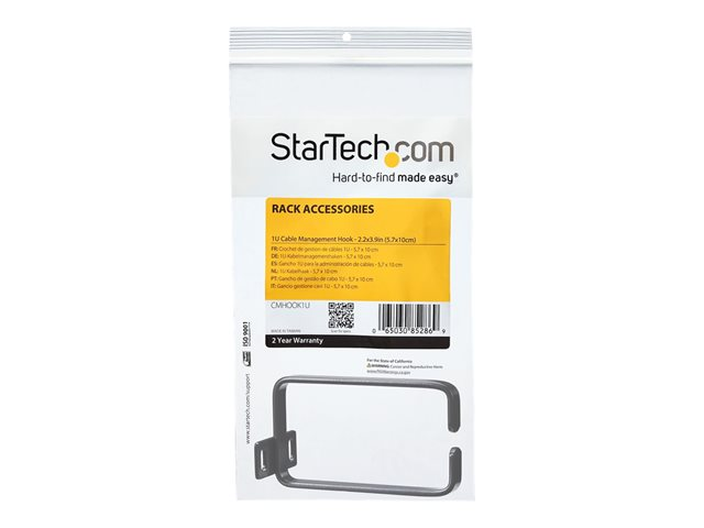 Add a cable management hook to your server rack or cabinet for strain relief and organization. The CMHOOK1U Vertical Cable Management D-ring lets you add a 1U metal cable hook to your server rack or cabinet to provide an organized channel for your cables. This TAA compliant product adheres to the requirements of the US Federal Trade Agreements Act (TAA), allowing government GSA Schedule purchases. Constructed of high-quality steel, the cable D-ring measures 2.2 x 3.9in (5.7 x 10cm) and offers a flexible opening for easy insertion of bundled cables. Providing strain relief for attached cables, multiple cable rings can be attached to your rack where you need them for a versatile cable management solution. Please see other cable management D-ring products for different size configurations: 1U Cable Management D-ring - 2.2 x 5.9in (5.7 x 15cm) - CMHOOK1UL; 1U Cable Management D-ring - 1.8 x 3.9in (4.5 x 10cm) - CMHOOK1UN.