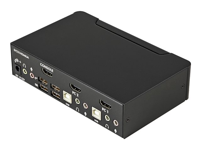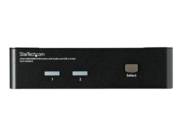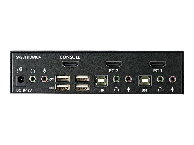 - Information Share a keyboard, mouse and HDMI monitor between 2 multimedia computers. The SV231HDMIUA 2-port USB HDMI KVM Switch lets you control two USB-enabled multimedia computers or devices with HDMI video interfaces, using a single peripheral set/console (USB keyboard, mouse, monitor, speakers and microphone). A highly versatile KVM solution, the USB HDMI KVM Switch features an integrated 2-port USB 2.0 hub that lets selected computers access shared high speed USB devices, eliminating the cost of duplicate USB peripheral purchases. Ensuring high quality video capability, the HDMI KVM switch supports HD resolutions of up to 1920 x 1200. Offering genuine digital signal transmission over the cable, this switch can be used to share one HD panel between multiple HDMI sources such as Blu-Ray players, Video Game consoles and HD media centers. The switch also supports audio and microphone switching functions and allows you to select connected computers, USB device hub ports and audio/mic channels either simultaneously or independently using either front-panel push-buttons or keyboard hotkeys.
