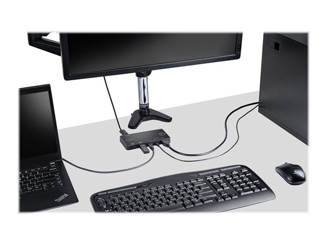 Enskild 4K 60 Hz HDMI 2.0-skärm - Kompakt HDMI KVM-switch för stationär/bärbar dator - USB-bussdriven - Thunderbolt 3-kompatibel - Omkopplare för tangentbord/video/mus/ljud - 2 x KVM/ljud - skrivbordsmodell